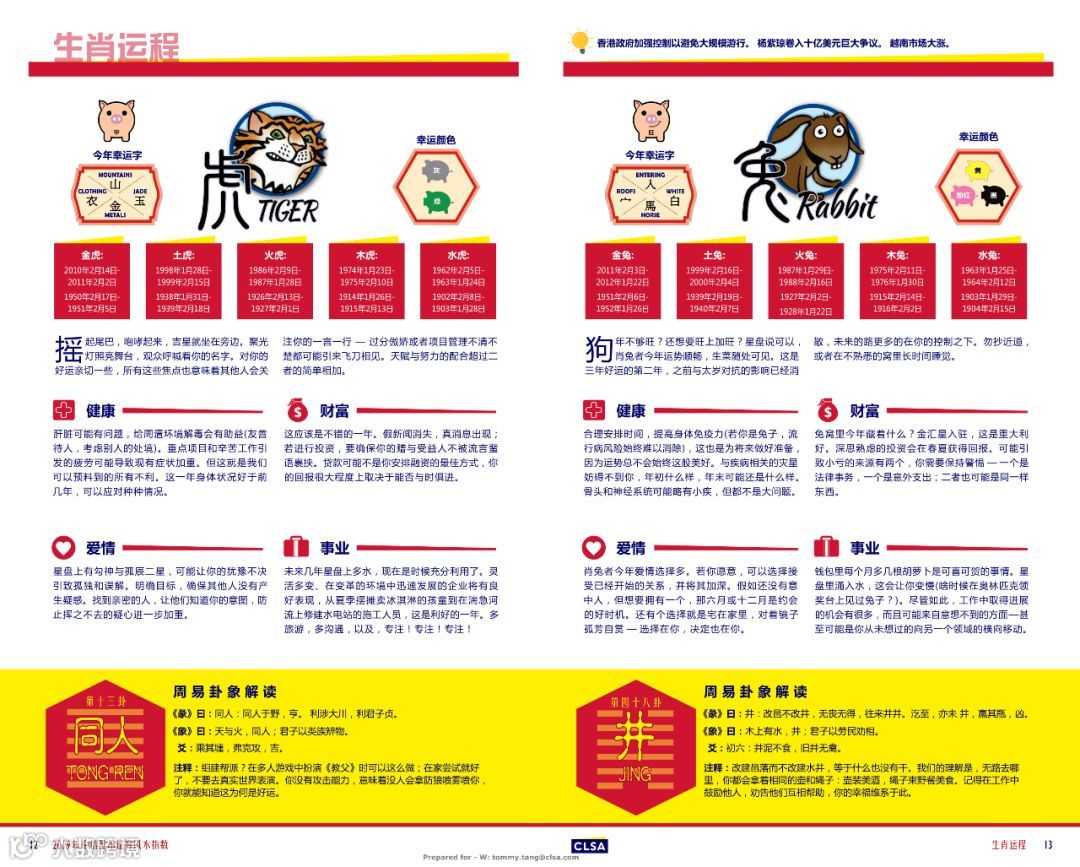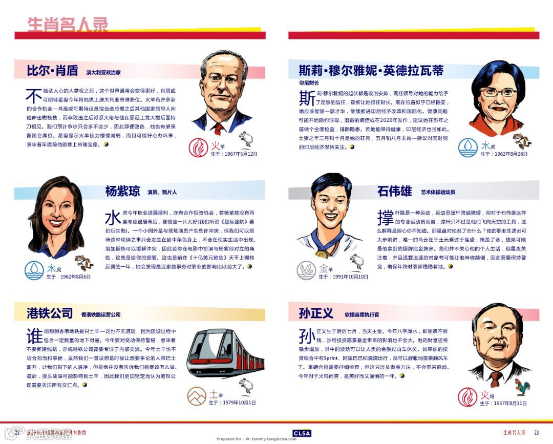 报告指出,恒生指数属土鸡,与土猪「夹八字」之下,今年情況看起來不妙。预期新一年恒指将在「泥里打滚,偶尔急跌」,市场较为波动,“来年宜止损,不宜逐利”。