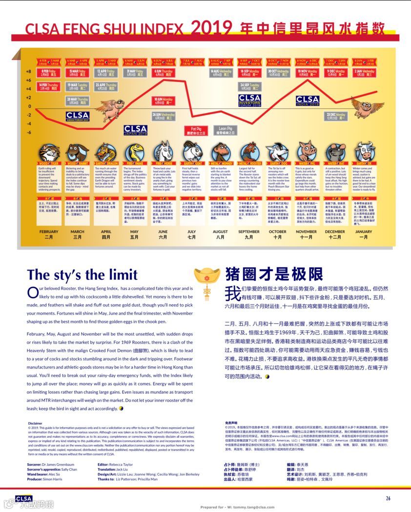 就在昨天,中信里昂的《2019恒生指数年度风水指南》如约而至了,被称乙亥猪年第一卦。