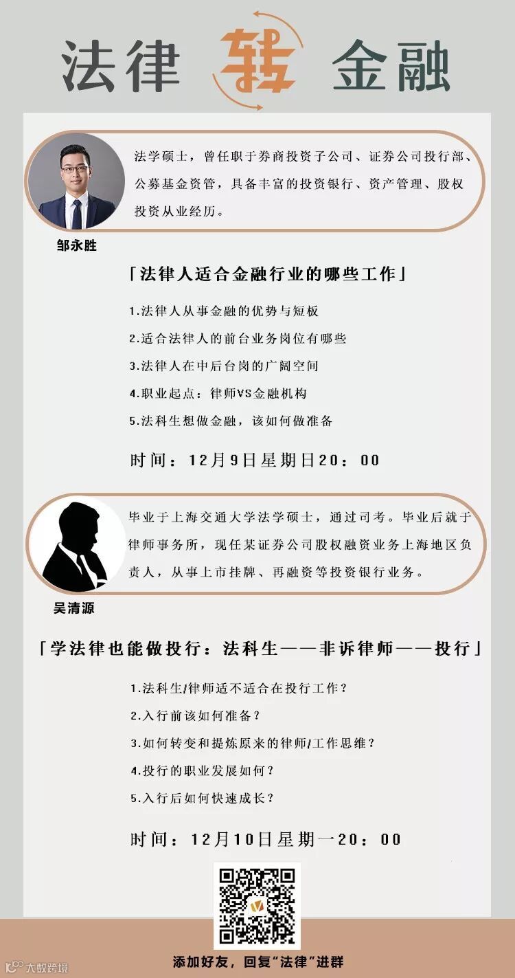 讲座二:学法律也能做投行:法科生——非诉律师——投行