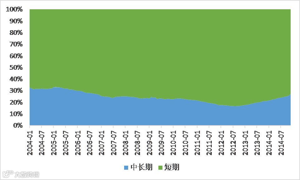 于是,我们就看到了一个很畸形的信贷结构。比如,以中小微企业重镇温州为例,其全部信贷中,短期贷款的占比从2005年开始一路飞升,2012年达到83%的峰值。