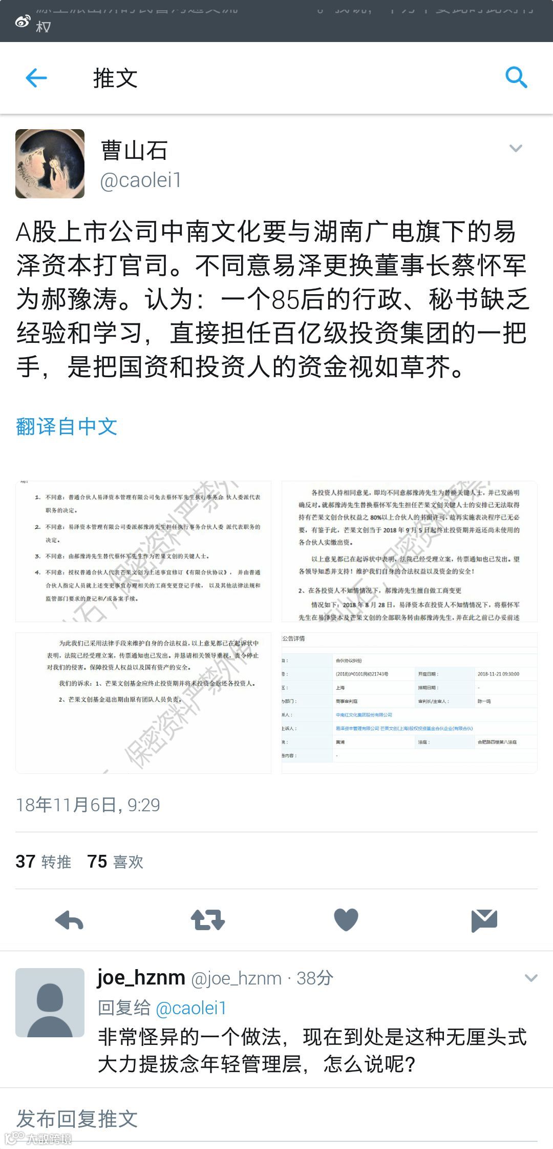 以下截图来自“曹山石”的推特。
