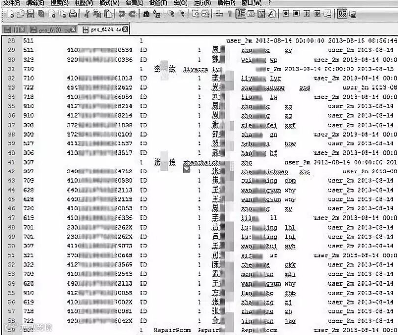 3.酒店开房记录内部ID号、同房间关联号、姓名、卡号、手机号、邮箱、入住时间、离开时间、酒店ID号、房间号、消费金额等,共66.2G,约2.4亿条。