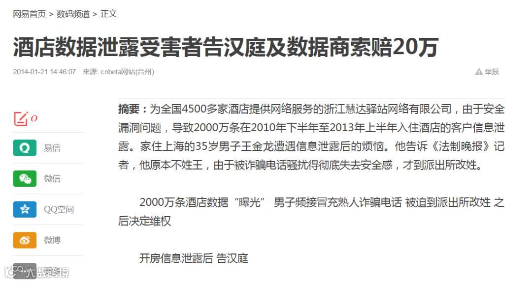 上面说的上海王金龙的起诉,法院认为“被泄露的信息,其扩散渠道不具有单一性和唯一性”,也就是说,王先生的个人信息可能是通过其他途径泄露出去的,因此,没有支持他的诉讼请求,汉庭无罪。