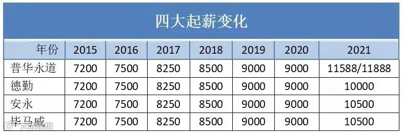 但“四大”起薪高早已不是新鲜事,每年上涨几百至千元也并不足为奇。