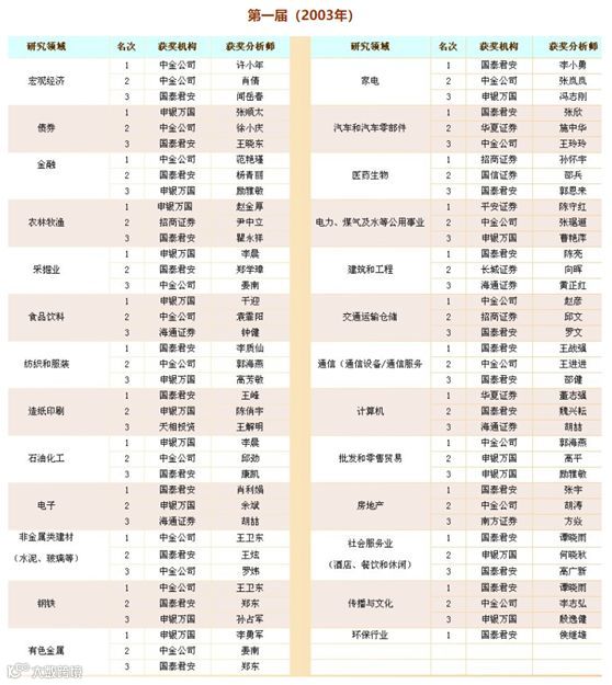 中国证券市场发展了十年左右到2003年,仍然是庄股盛行,炒作风气不减;而此时的研究以对内服务为主,市场影响力小;1999年,申万研究所在庄东辰的带领下,通过对外服务实现了盈利,同时伴随着公募基金的崛起,券商研究所开始了对外服务的新模式。于是研讨会、策略会、报告等开始盛行,新财富的诞生也就具备了“演员”和“评委”这两项最基本的条件。