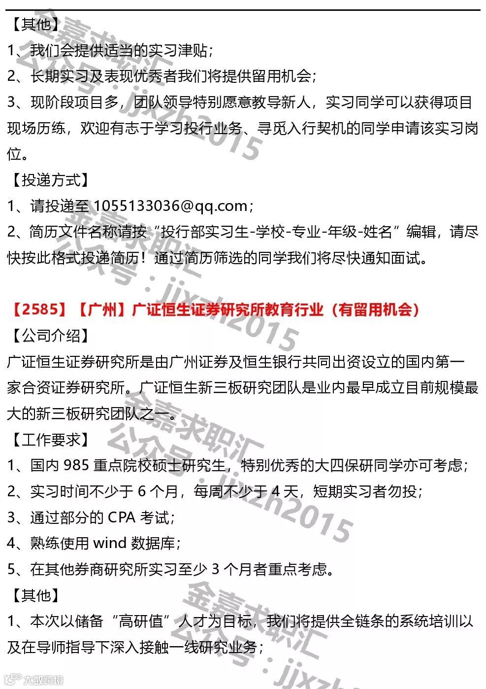 【温馨提示】我们将仍然把相关岗位登录至小金窝网站(www.xiaojinwo.com)中,欢迎各位同学使用简历投递系统,注册后上传或在线填写简历,即可对所有感兴趣的岗位【一键投递】!简历将会【直接投递】至对方邮箱!日报将持续每日更新信息,对于日报中感兴趣的登陆后【搜索职位编号】对近期岗位进行投递。鉴于网站仍在完善阶段,如有问题请联系【1264496831】或【xjw-pm】~