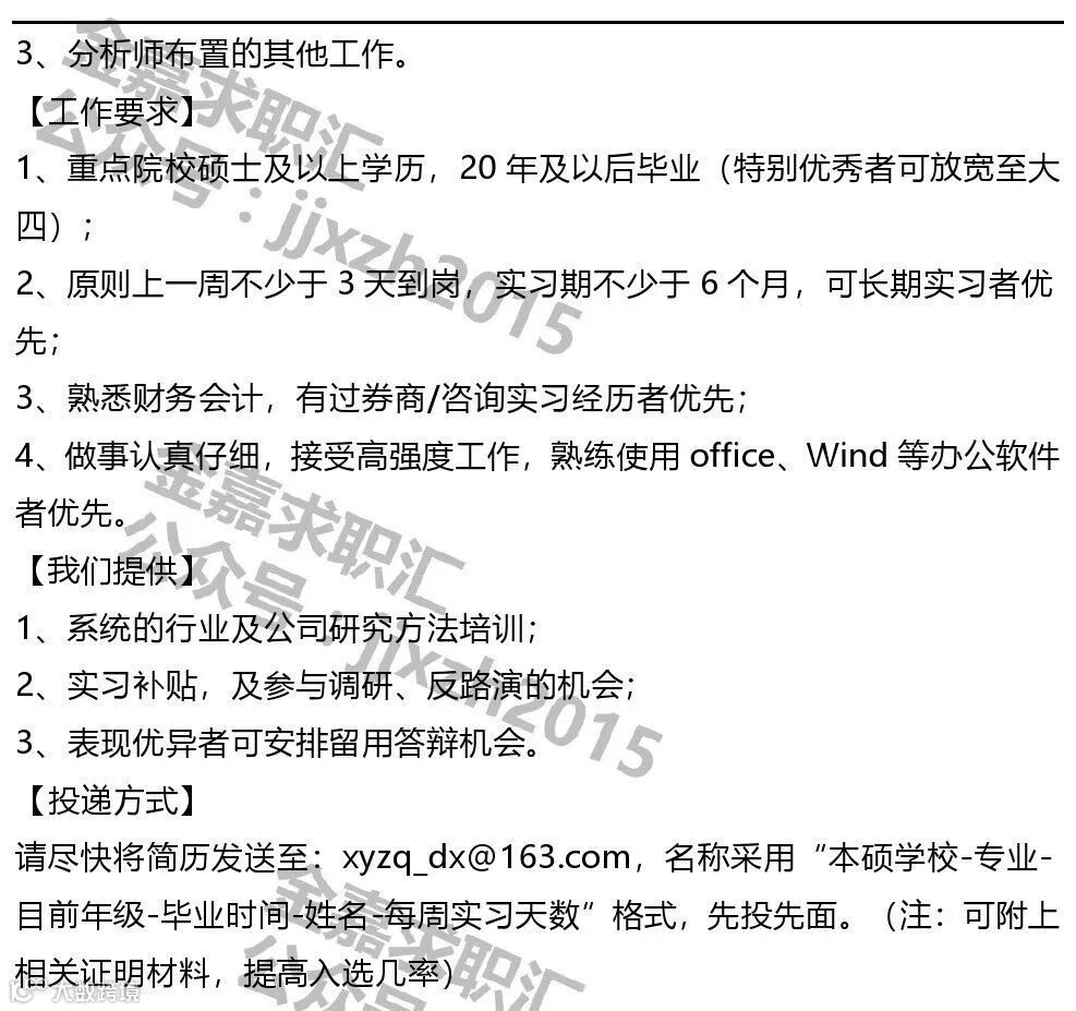 【特别说明】实习日报改版前,我们多次发现求职信息被恶意抄袭或用于贩卖,因此建立了相关的投递系统来规避此类现象的发生,同时也希望为同学们提供更统一标准的服务。我们承认目前我们的IT系统还比较弱,存在各方面的不足,但我们郑重保证和承诺所有过去和未来通过我们系统进行投递的简历均直接投递到了用人单位预留的邮箱中,金融小伙伴未做任何截留和收费处理。鉴于上述处理对投递简历的同学们造成了相关困扰,我们决定即日起恢复原版本,以正视听。