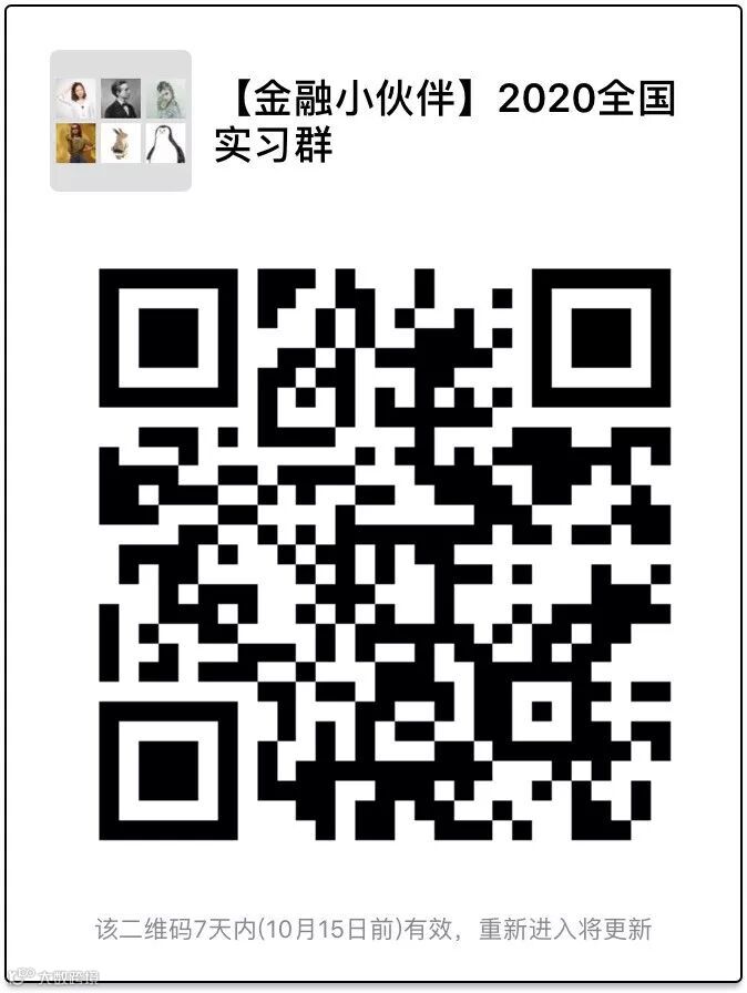 金融小伙伴希望尽可能广泛地为每一位渴望进入金融行业的学子提供帮助。只要你是20年及以后毕业,就可扫描下方二维码获取入群方式,我们目前有5个地区的实习群:华北,华东,华中,华南,西南。