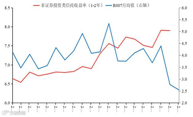 作为市场参与者,我们对这一现象的解释是:资管新规导致非标“塌方”,企业现金流紧张,被迫把境外资金调回境内或在境外市场筹措资金,使得即使在美元升息和走强的背景下,大量资金也流入境内,造成CFETS的大幅度升值。这一解释与当前局面的相关性在于,截至7月底,我们也没有看到非标市场的压力缓解,甚至可能会进一步恶化;相反在债券市场上,利率下降的关键原因是非标市场压力上升:非标市场压力上升,大量投资非标的资金主动或被动回到表内,导致债券市场收益率下降。