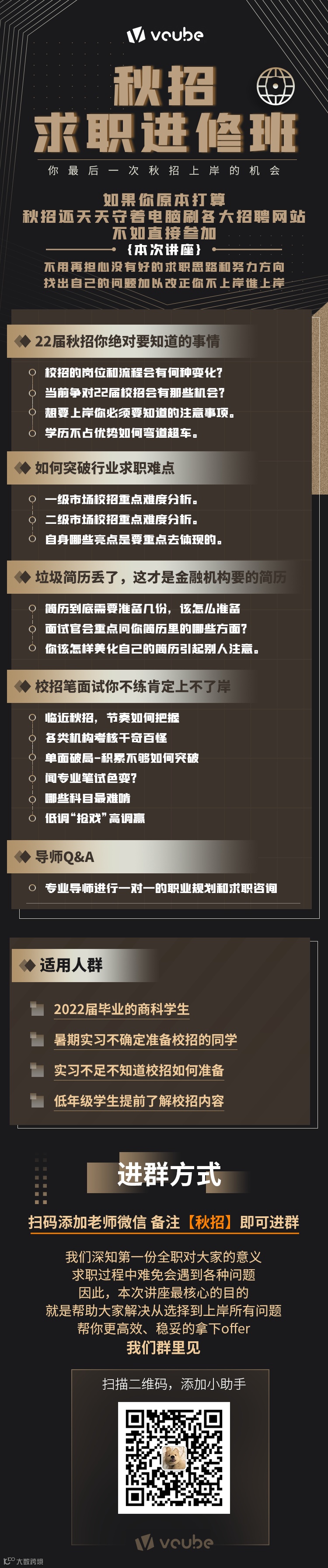 所以,恰恰是“小白”的同学,一旦明确好自身的职业定位,那就非常有求职的优势。可以充分利用好应届毕业生的身份。
