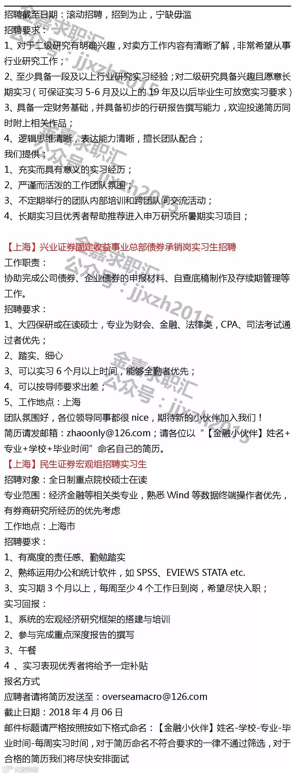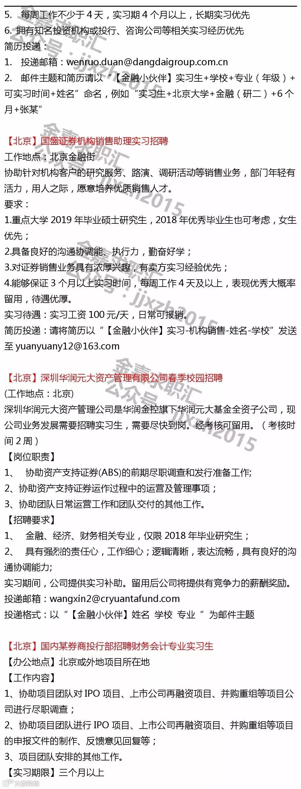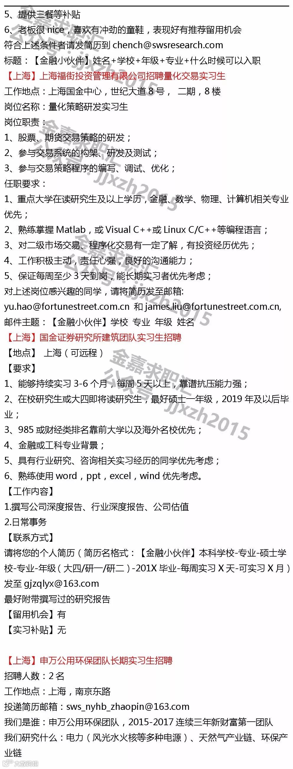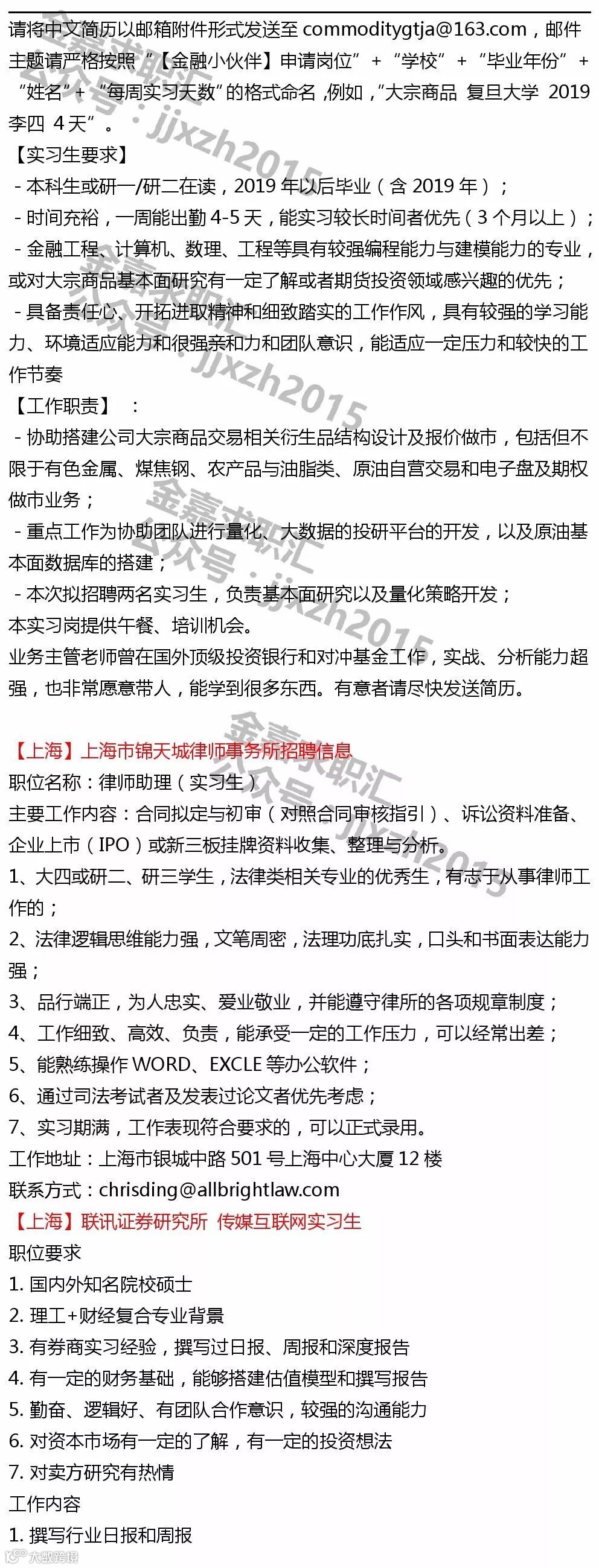 【投递提示】鉴于各机构及个人主动提供给金融小伙伴平台的实习信息数量较多,所以除非特殊要求,原则意义上实习信息只发布一次~鉴于每则实习信息一般具有一定有效性,所以建议找实习的同学,可以关注我们最近一周时间左右发布的所有实习日报以进行投递~