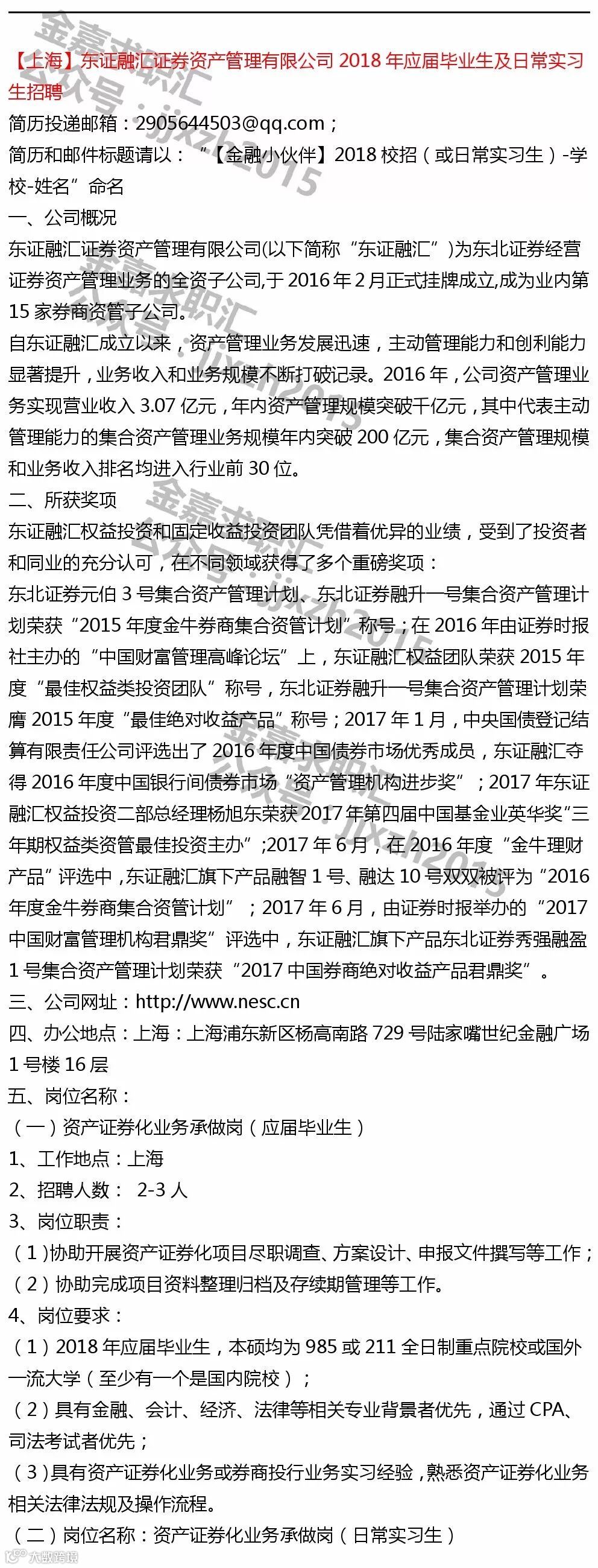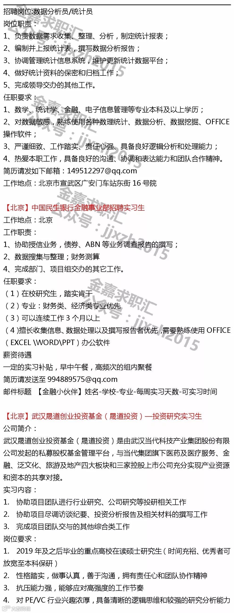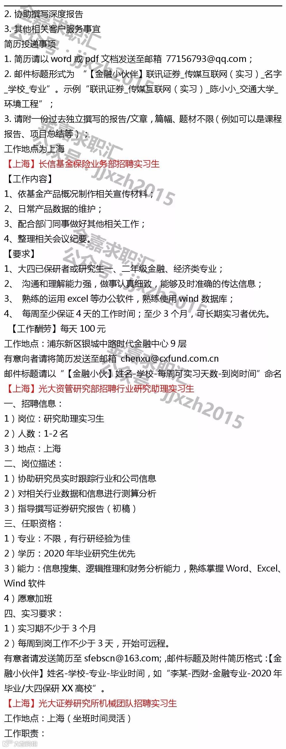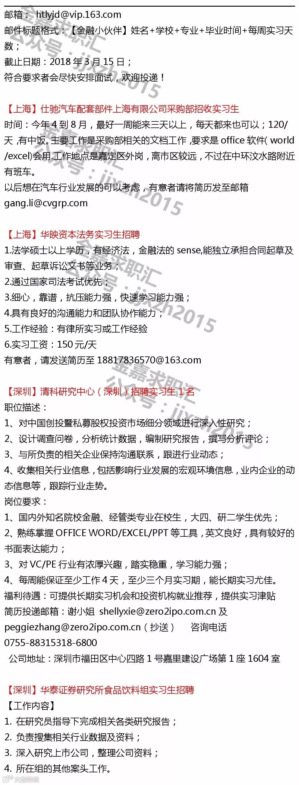 【投递提示】鉴于各机构及个人主动提供给金融小伙伴平台的实习信息数量较多,所以除非特殊要求,原则意义上实习信息只发布一次~鉴于每则实习信息一般具有一定有效性,所以建议找实习的同学,可以关注我们最近一周时间左右发布的所有实习日报以进行投递~