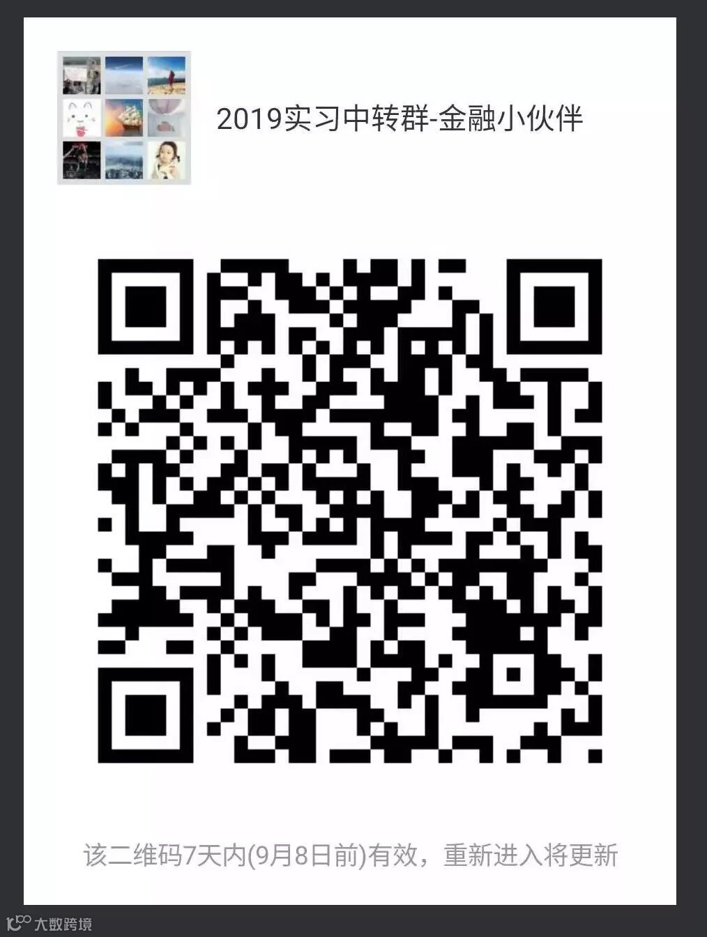 金融小伙伴希望尽可能广泛地为每一位渴望进入金融行业的学子提供帮助。只要你是19年及以后毕业,就可扫描下方二维码获取入群方式,我们目前有5个地区的实习群:北京、上海、广深、华中、西南。
