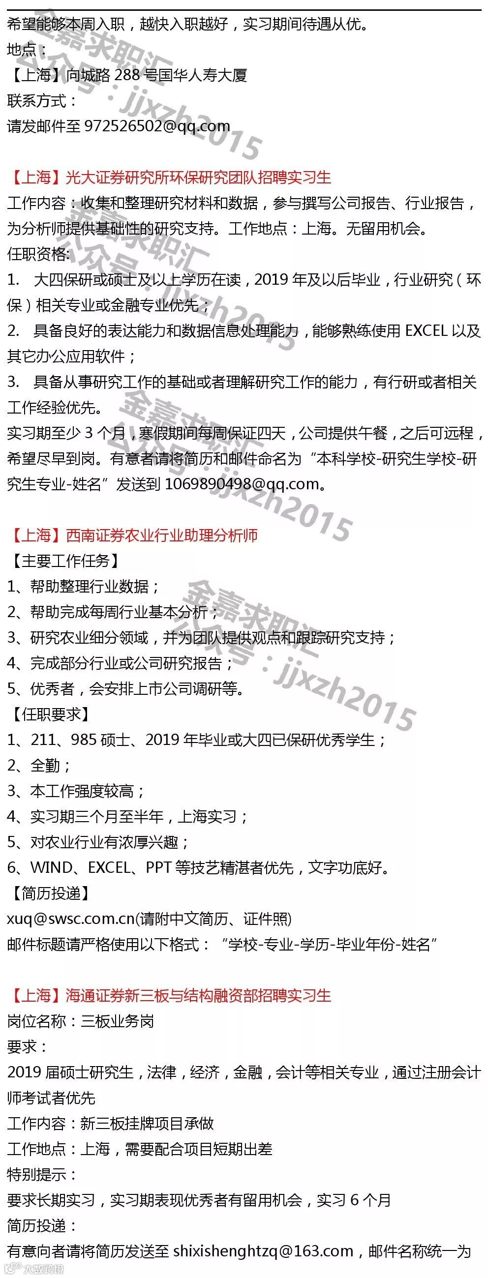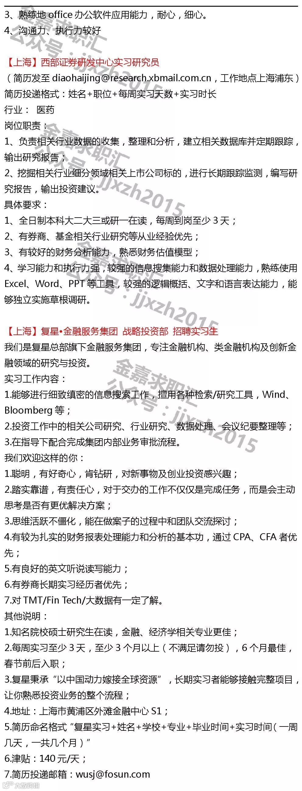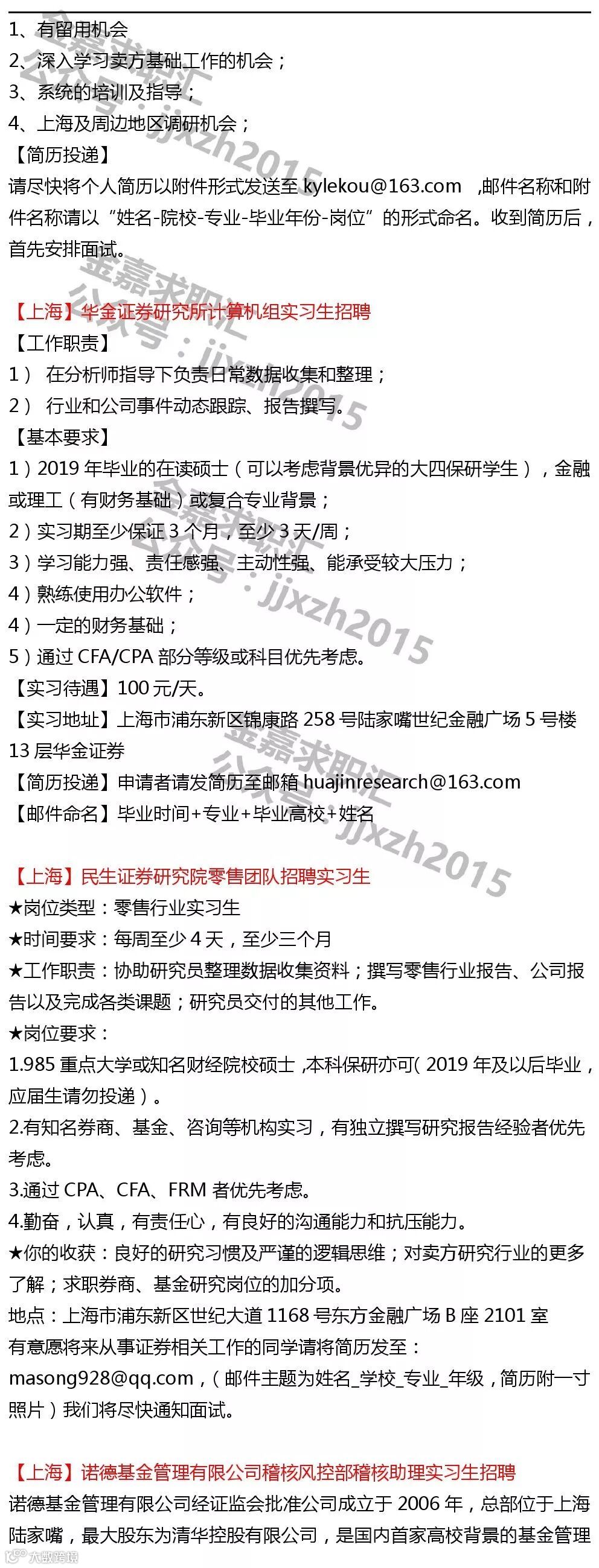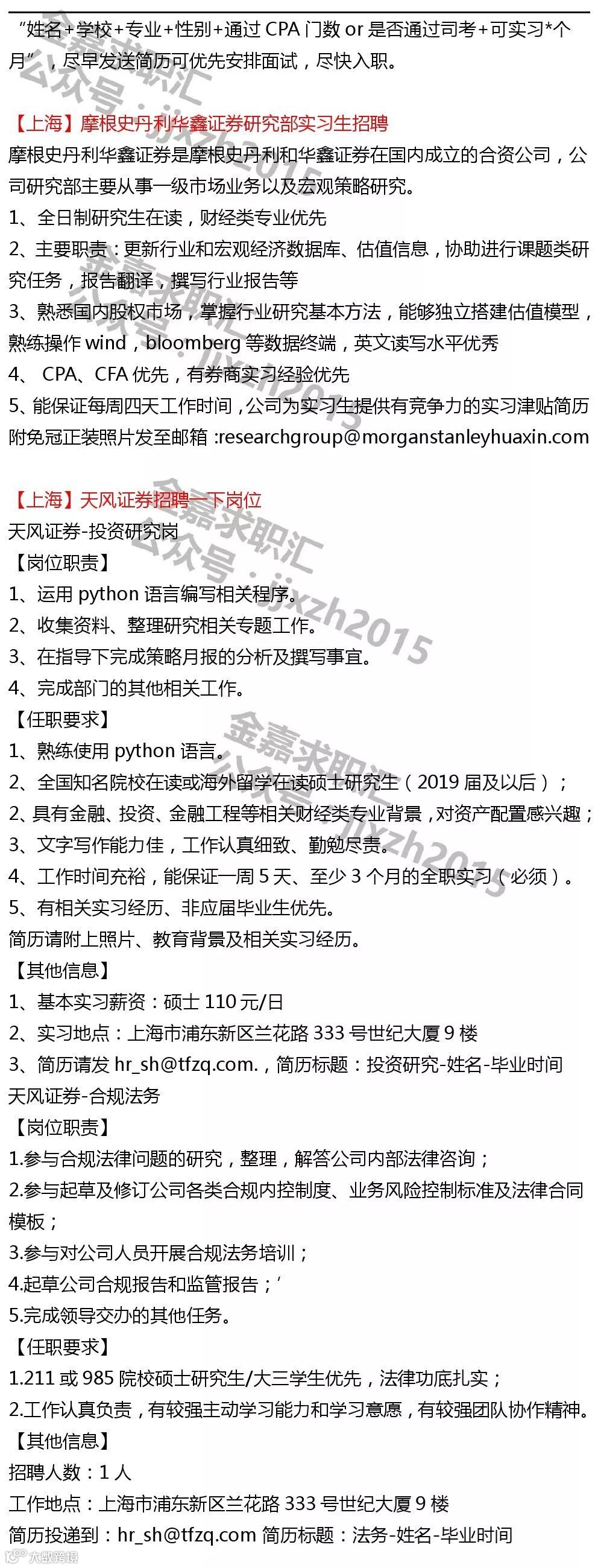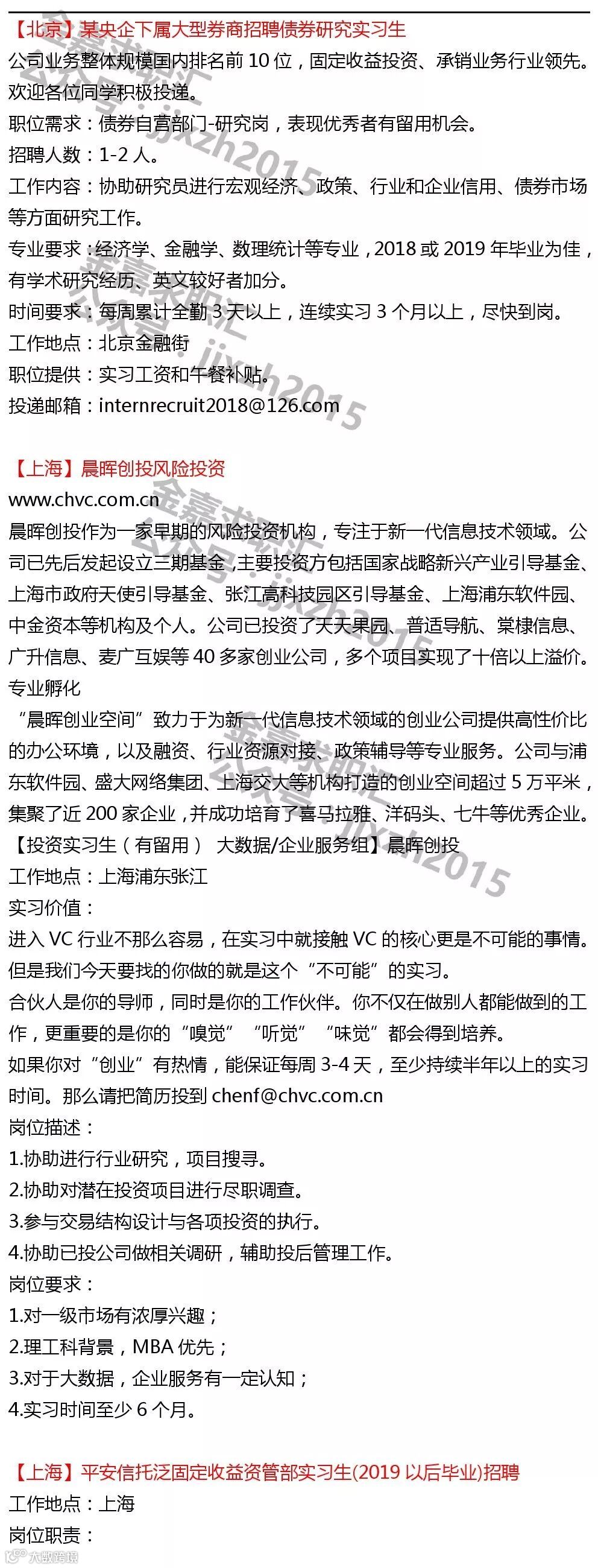 【投递提示】鉴于各机构及个人主动提供给金融小伙伴平台的实习信息数量较多,所以除非特殊要求,原则意义上实习信息只发布一次~鉴于每则实习信息一般具有一定有效性,所以建议找实习的同学,可以关注我们最近一周时间左右发布的所有实习日报以进行投递~