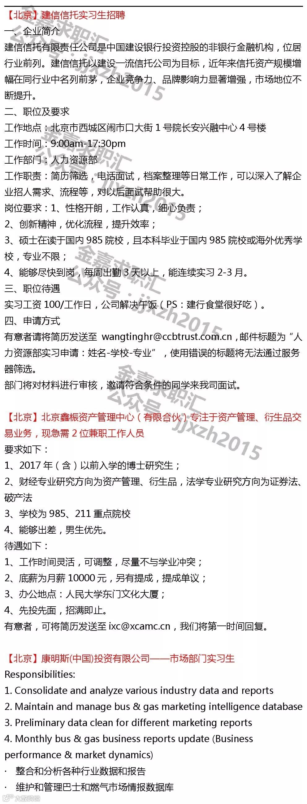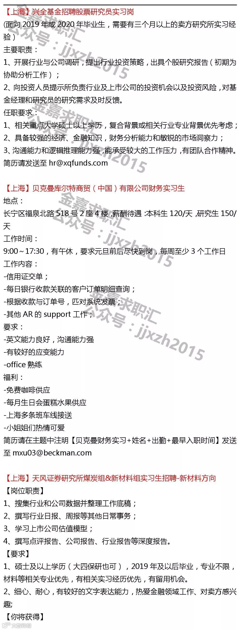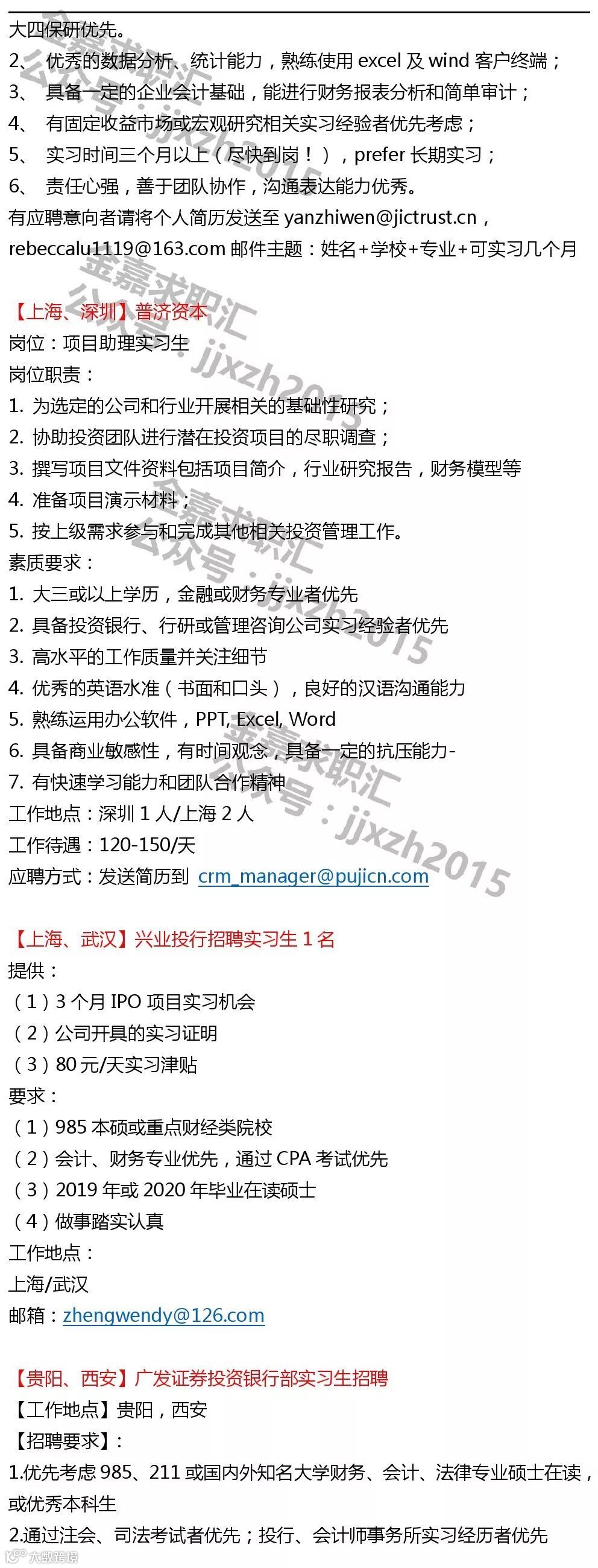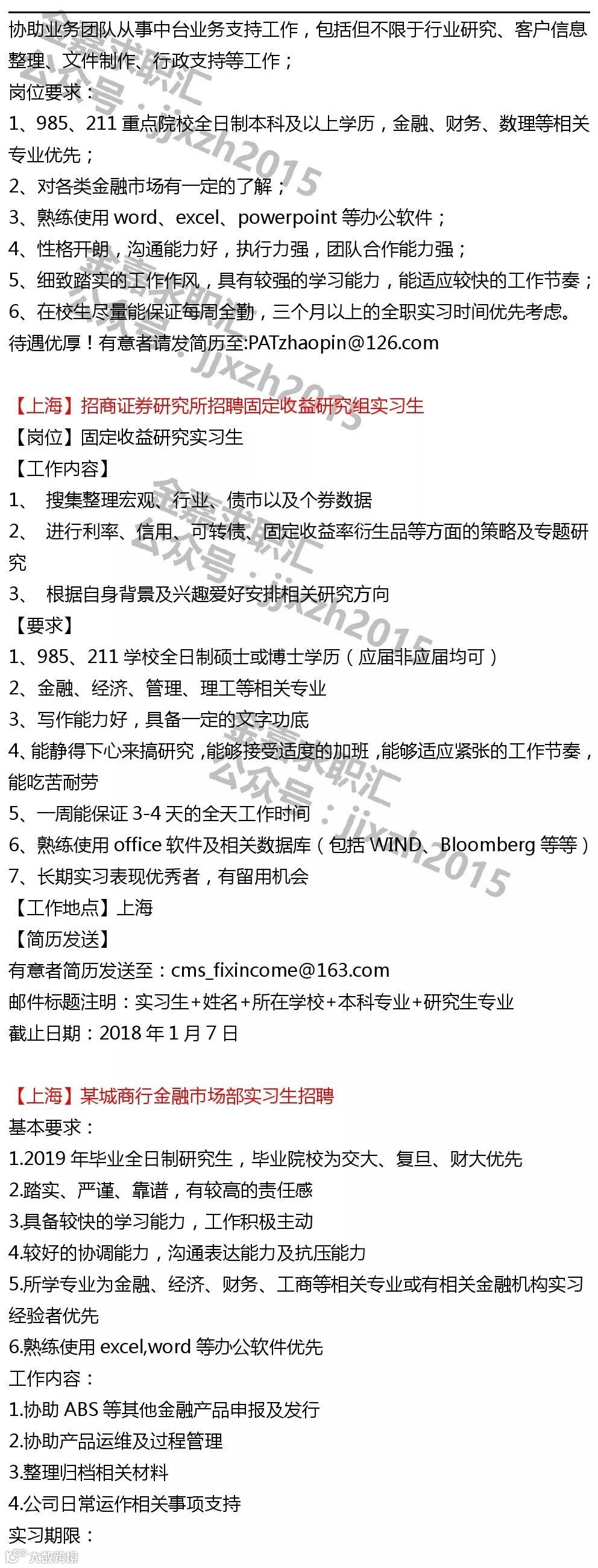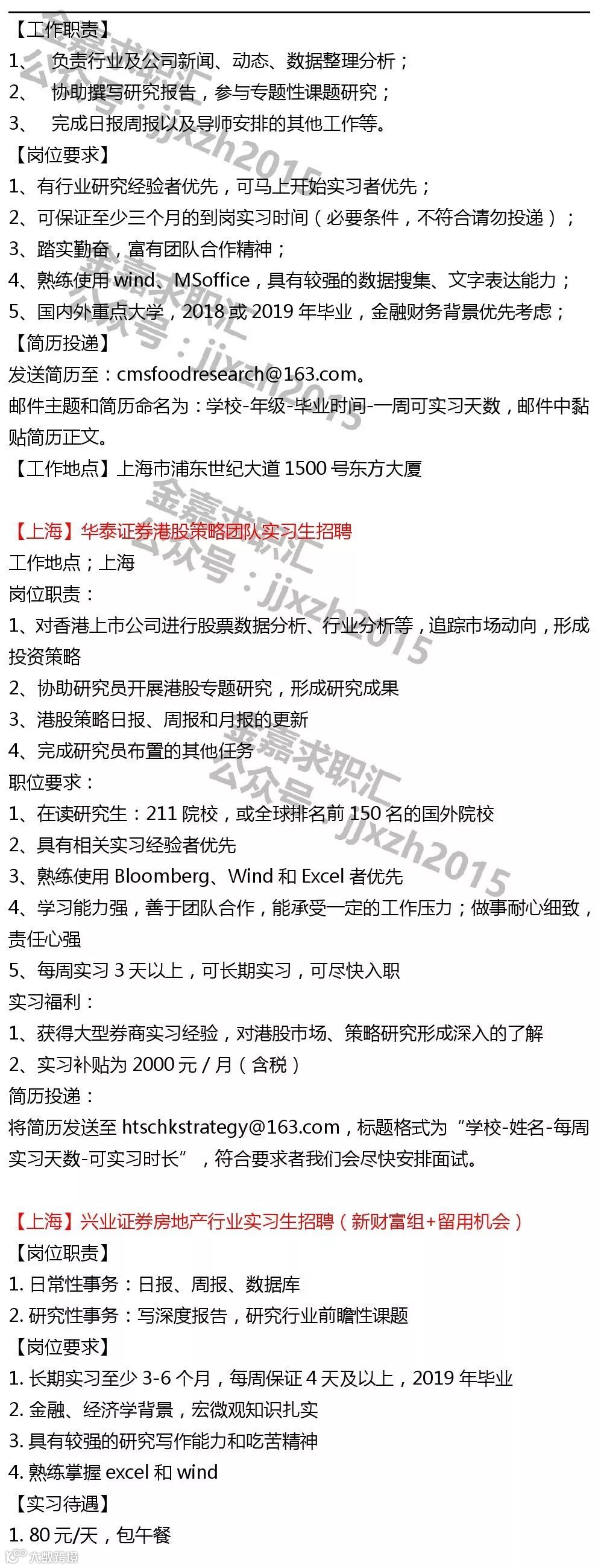 【投递提示】鉴于各机构及个人主动提供给金融小伙伴平台的实习信息数量较多,所以除非特殊要求,原则意义上实习信息只发布一次~鉴于每则实习信息一般具有一定有效性,所以建议找实习的同学,可以关注我们最近一周时间左右发布的所有实习日报以进行投递~