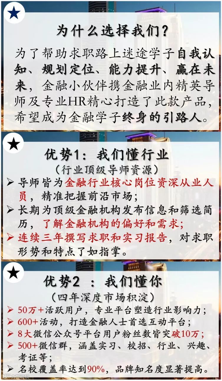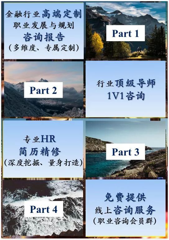 专属金融求职会员群,长期提供免费线上咨询服务,为金融求职与职业发展一路保驾护航!