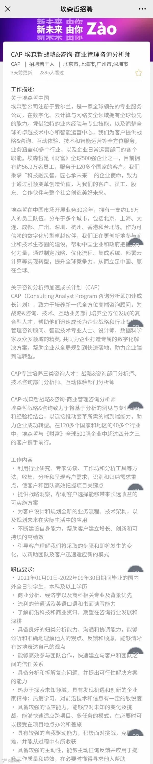 埃森哲的校招它来了!