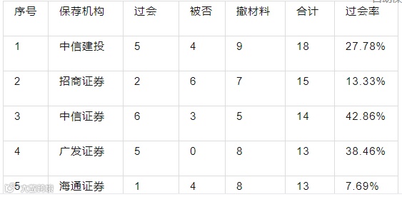 保荐机构过会率统计:覆巢之下,齐奏凉凉