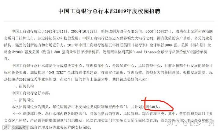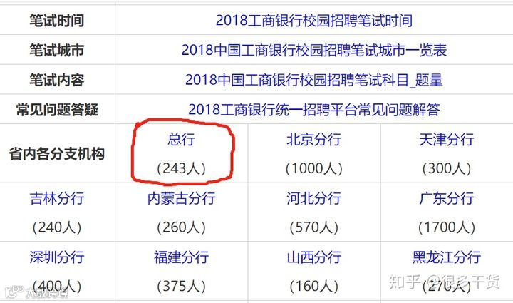 把工农中建交几个都算上,一般工行、农行总行招的比较多点,多的时候是300多,一般是200多一年,本来这两家人数也是最多的。