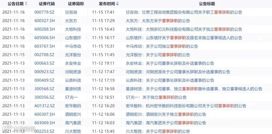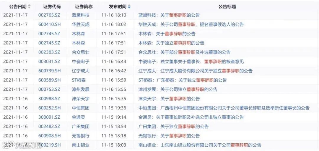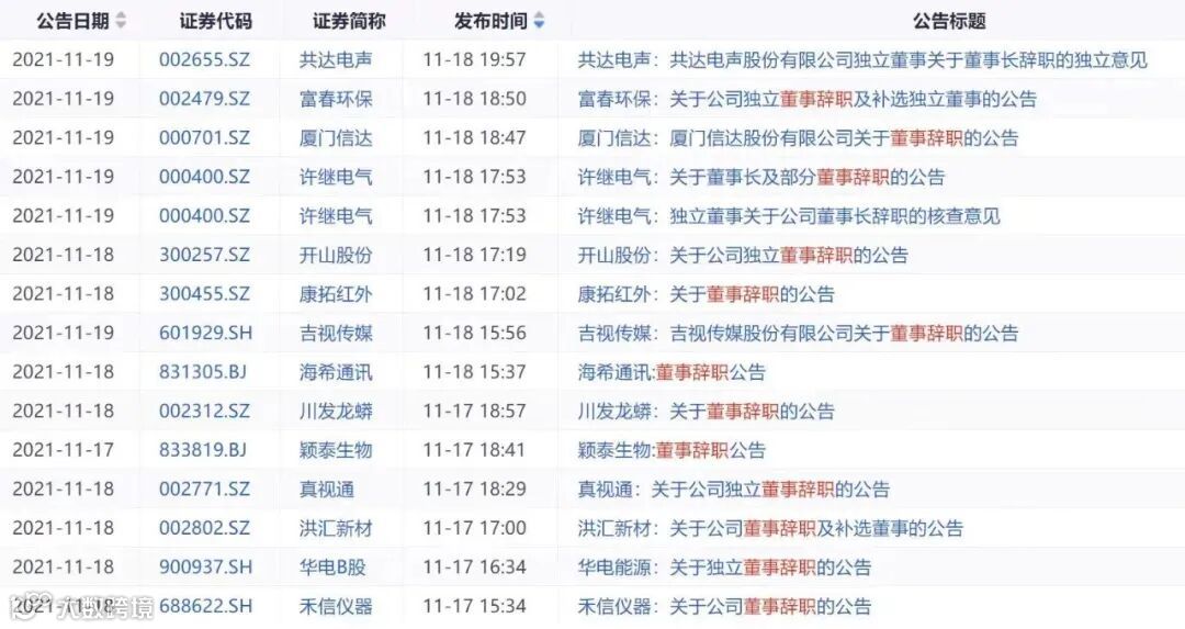 自11月12日以来,陆续有12家上市公司出现独董辞职的情况,16日当天发布公告的就有5家公司,其中绝大部分辞职是个人原因,个别是由于任职到期或职务变动。