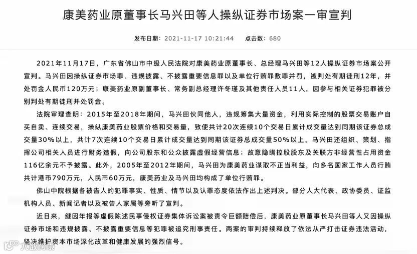 以康美药业董事长马兴田为首,肆意妄为地财务年报造假,操纵证券市场割韭菜,重点是这个判决连带了13名董监高的赔偿责任,其中5名是独立董事。
