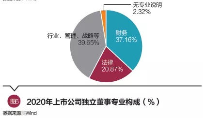 尤其是最近3年,具有财务背景的独立董事约占四成;法律背景的独立董事约占两成,其余的独立董事大多为行业专家、管理专家、战略专家等专业背景。独立董事在上市公司董事会中占比较低且稳定自设立独立董事机制以来,