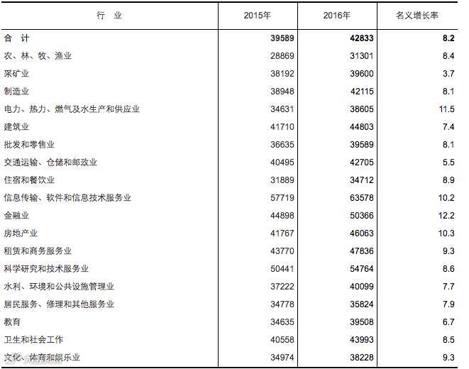 2016年各行业年平均工资57394元 外企岗位间差距最大