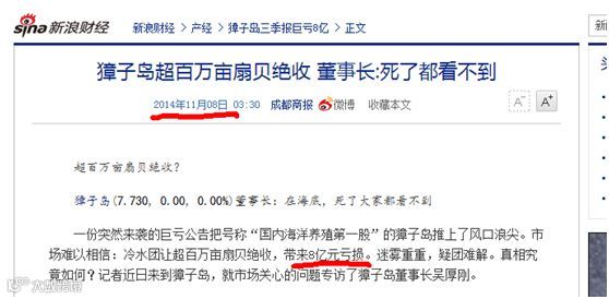 2014年,獐子岛超百万亩扇贝“因灾绝收”