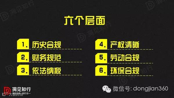考察六个层面是对目标企业的深度了解,任何一个层面存在关键性问题,可能影响企业的改制上市。当然,有些企业存在一些细小暇疵,可以通过规范手段予以改进。