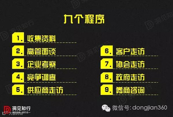 企业考察:对企业的经营、研发、生产、管理、资源等实施实地考察;对高管以下的员工进行随机或不经意的访谈,能够得出更深层次的印象或结论。