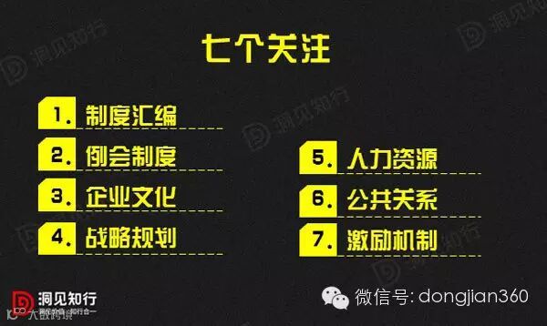七个关注是对目标企业细小环节的关注。如果存在其中的问题,可以通过规范、引导的办法加以改进。但其现状是我们判断目标企业经营管理的重要依据。
