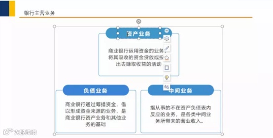 银行业务可分为三类:资产业务、负债业务、中间业务。