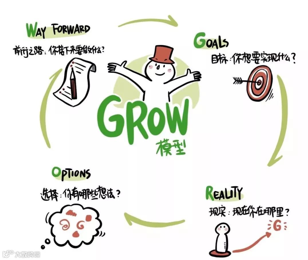 那么,我们来试用下书中写的GROW模型,看能不能帮助到本科的你?这个模型拆开来分别是:目标设定(Goal)、现状分析(Reality)、方案选择(Options)、该做什么(Who、What、When、Will)。