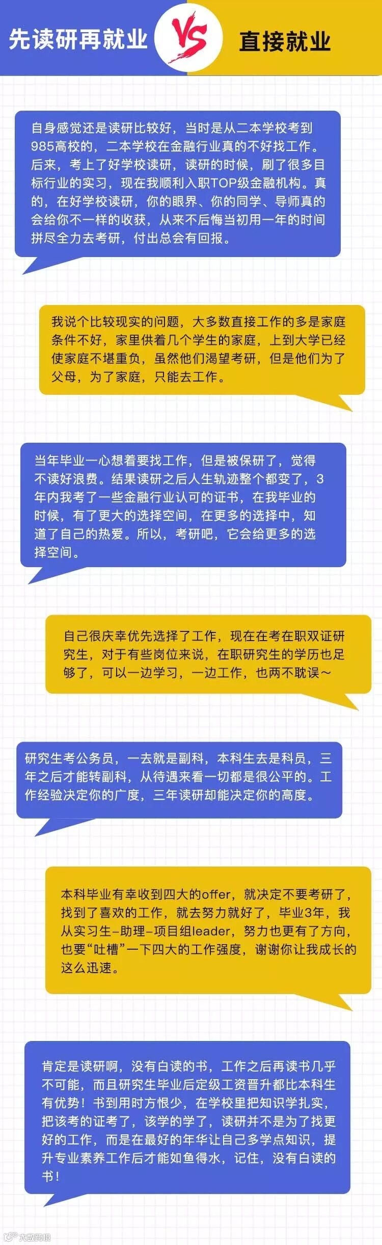 大体的回答思路无非也是两头分析,假如你不读研,那么经过一些相关工作的积累,跳槽去核心岗位会比较现实;另一种就是,老老实实读个相对好点的学校的研究生,对于金融行业而言反而是相对省心省力的方式。