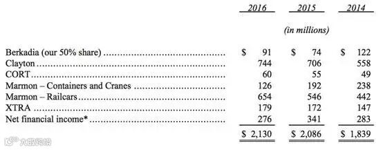 未来一段时间内,我们预计将继续扩大轨道车租赁业务的规模。与此同时,Marmon公司也在进行一系列补强型并购交易,这些交易对公司财务业绩的影响将在制造、服务和零售章节中具体描述。