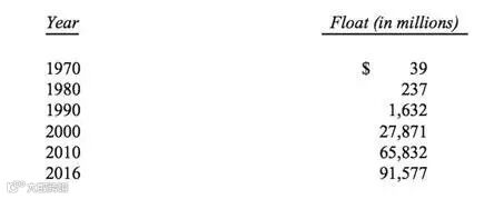 如果我们的周转金是零成本且长期的,我相信它将是这样的,这一负债实际值就远低于会计意义上的负债值。欠下将永远不会离开房子的1美元与欠下明天就将出房门且不能被取代的1美元,是两码事。然而这两种类型的负债在美国通用会计准则下被平等对待。