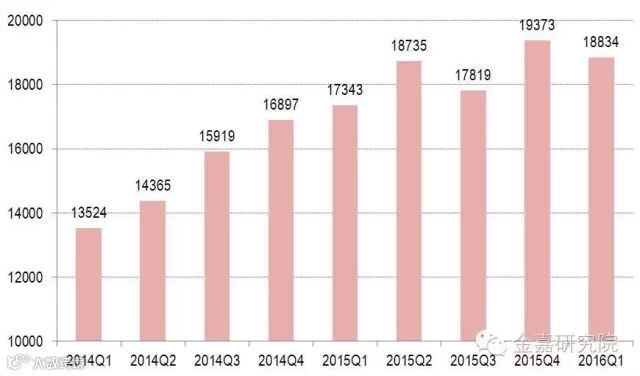 2016Q1移动阅读覆盖人群趋势(单位:万人)