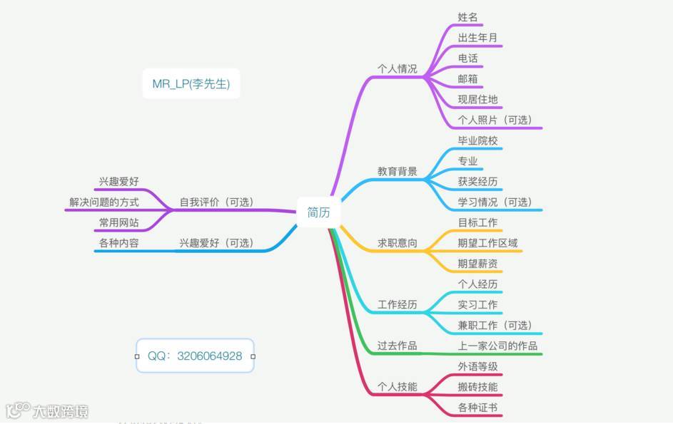 我把我认为简历中最重要的几个东西,分别通过思维导图的方式来呈现给大家。