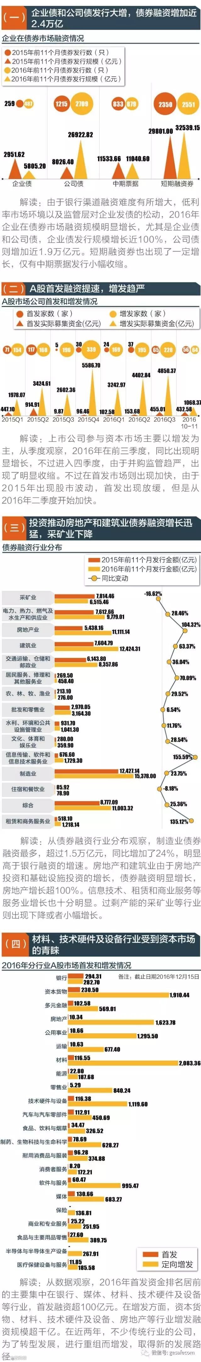 债券市场和资本市场是企业融资的重要渠道,尤其是债券市场,2016年,企业债券融资规模增长较为明显。