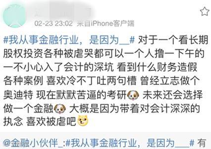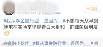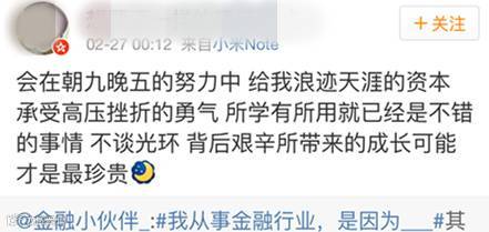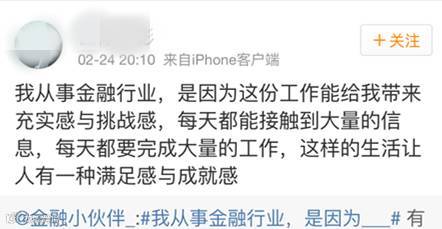 听了上面大牛们的心路历程,是不是感觉和大神们的距离也没那么遥远?下面来看看微博上的小伙伴们是为什么选择金融行业的吧。