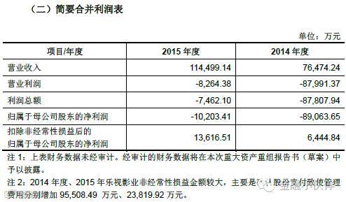 我们来看一看乐视影业近两年的经营状况。