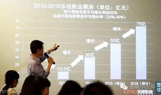 出版发行的电影不断增多,比2012年增长了一倍。票房收入也一路飙升,增长近11倍。足见其发展之迅速。事实上,这是小编整合实际数字所做的图,而乐视影业CEO张昭曾在2015年某一场发布会现场表示,乐视影业 2015 年预计票房50 亿,较2014年增长66%;2016 年预计票房75 亿元,同比增长50%。由此看来,乐视影业对自身发展还是持乐观态度,虽然最终没有完全达成这样的宏伟目标。