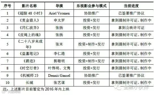 乐视影业具有轻资产的特点