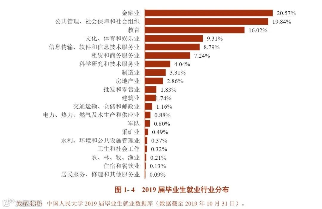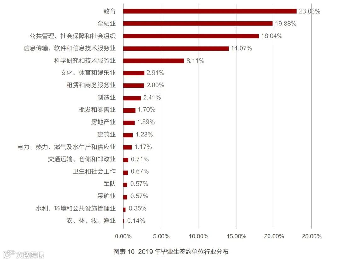 主要集中在“金融业”(20.57%)“公共管理、社会保障和社会组织”(19.84%)和“教育”(16.02%)领域。