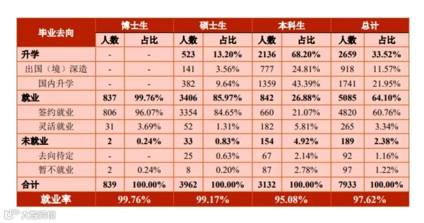 毕业生就业率是指深造和就业毕业生数量占毕业生总数的比例。