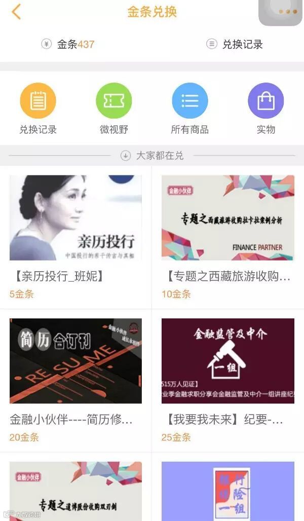 金条兑换--用户通过互动发帖参与问答等形式获取小金条,其可用于兑换商城中的商品。金品金铺内部资源丰富,涵盖金融热点、求职、简历修改、专业提升等方方面面。