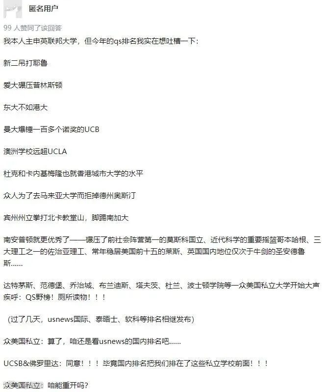 QS世界大学排名新鲜出炉,吐槽声满满?