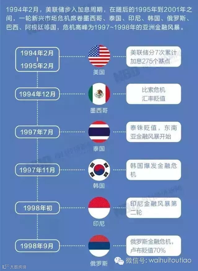 事实上,美联储加息引发局部地区金融危机早有大量案例。比如,1994年的那轮加息,如下图示: