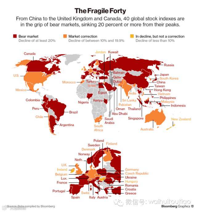 下图显示全球有多少国家正式进入“技术性熊市”或在熊市边缘徘徊……