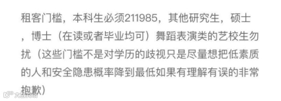 尽管上图的房东说明了这些门槛不是对学历的歧视,也许不是初衷,但终究是造成了这样的结果。本科是985、211,成了“明文规定”的宠儿,而本科不是985、211,似乎还成了原罪。